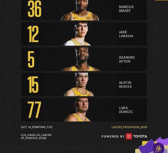 本場湖人首發(fā)陣容為東契奇+里夫斯+斯瑪特+拉拉維亞+艾頓。